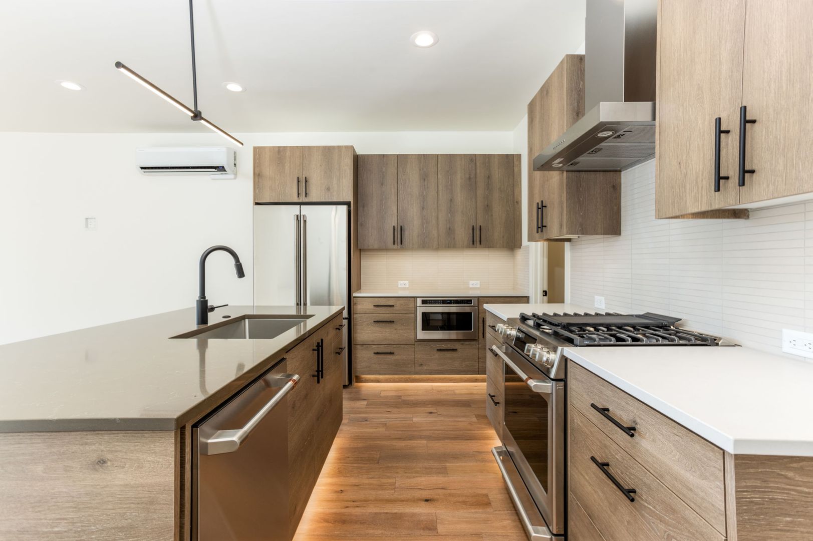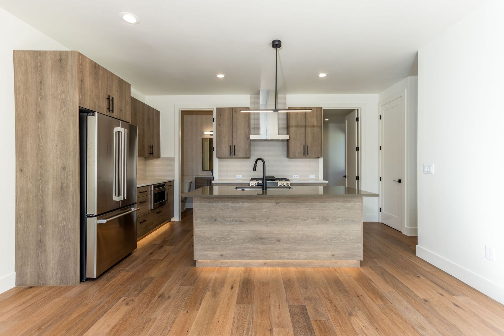 Gourmet Kitchen: The chef’s kitchen features a full-length island, pristine quartz countertops, high-end stainless steel appliances (including a gas range and fridge), and abundant storage, making it ideal for culinary enthusiasts.